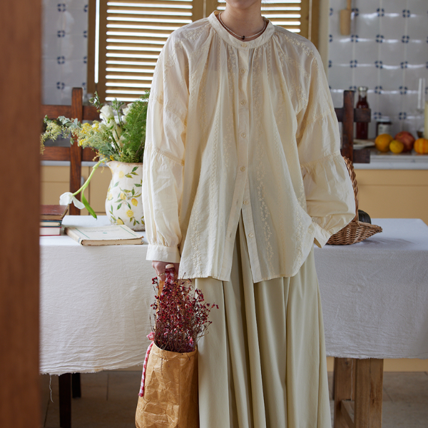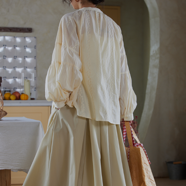 ギャザーネックエンブロイダリーブラウス 2696