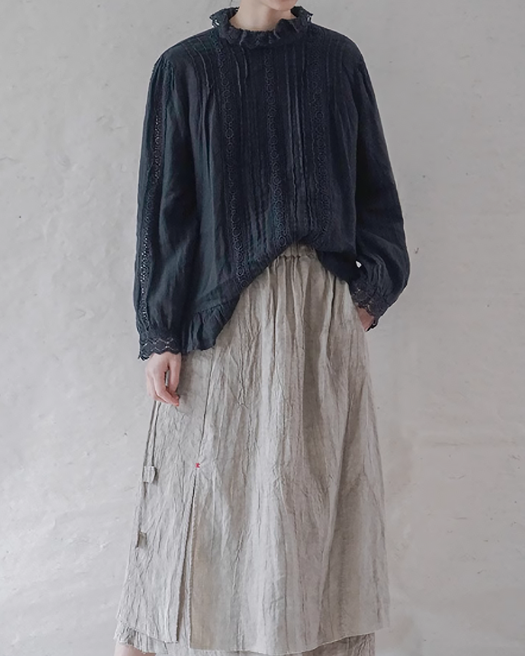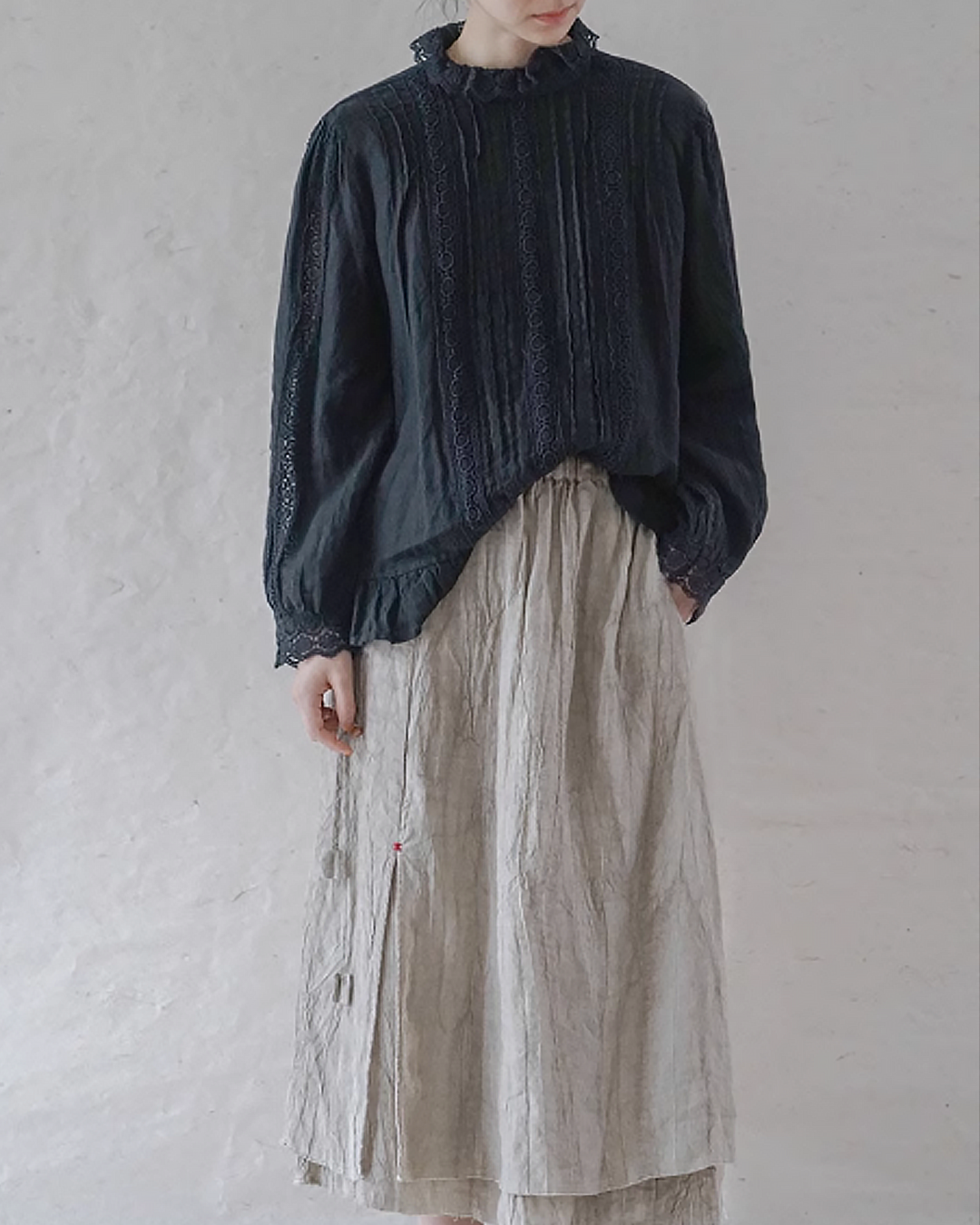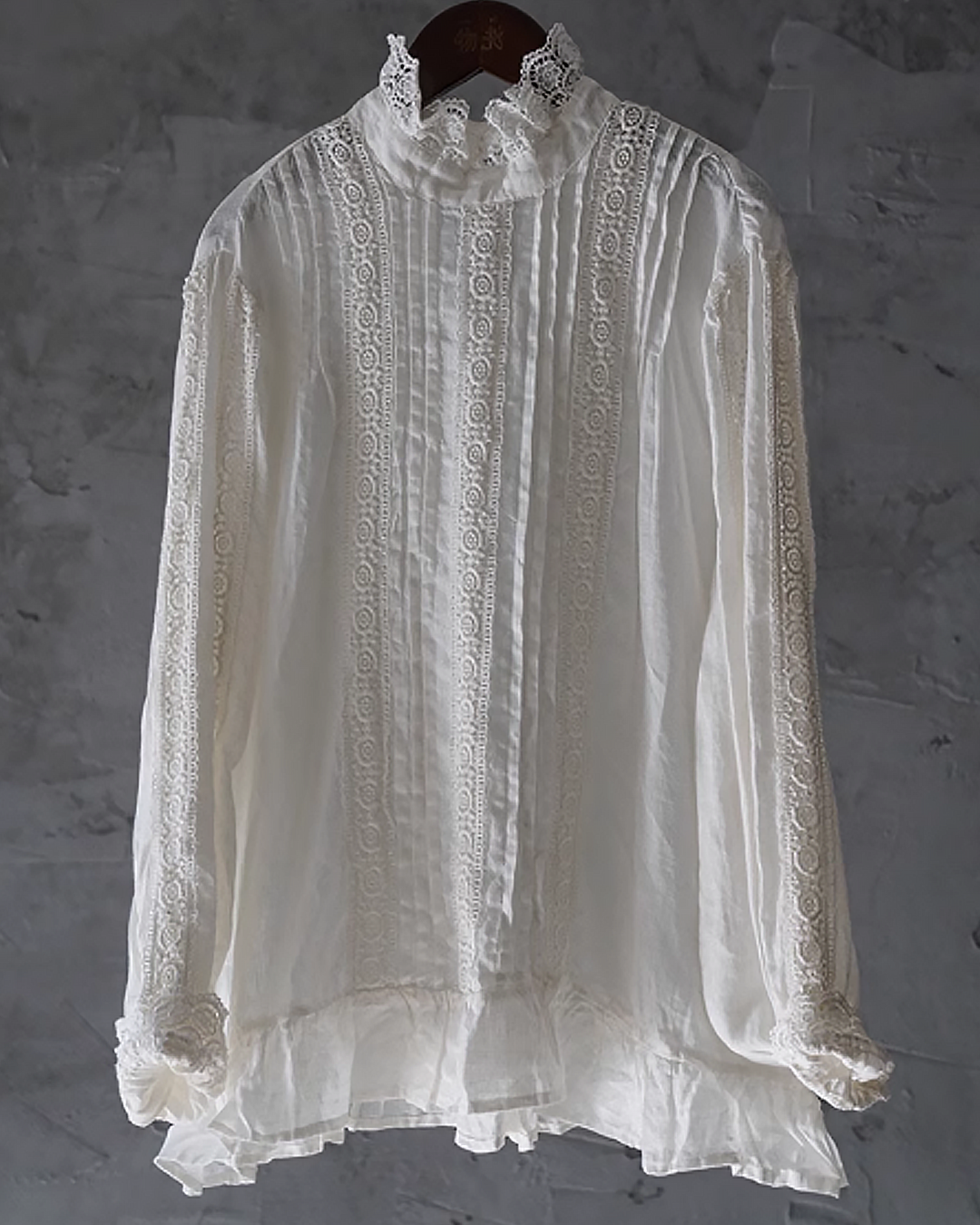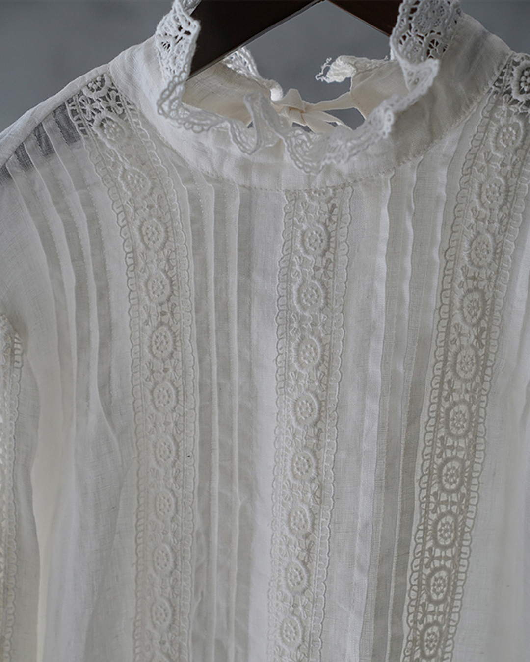 スタンドカラーフリルエンブロイダリーブラウス 1149