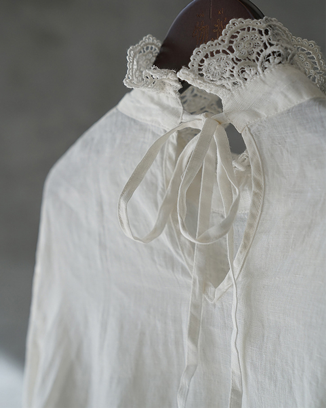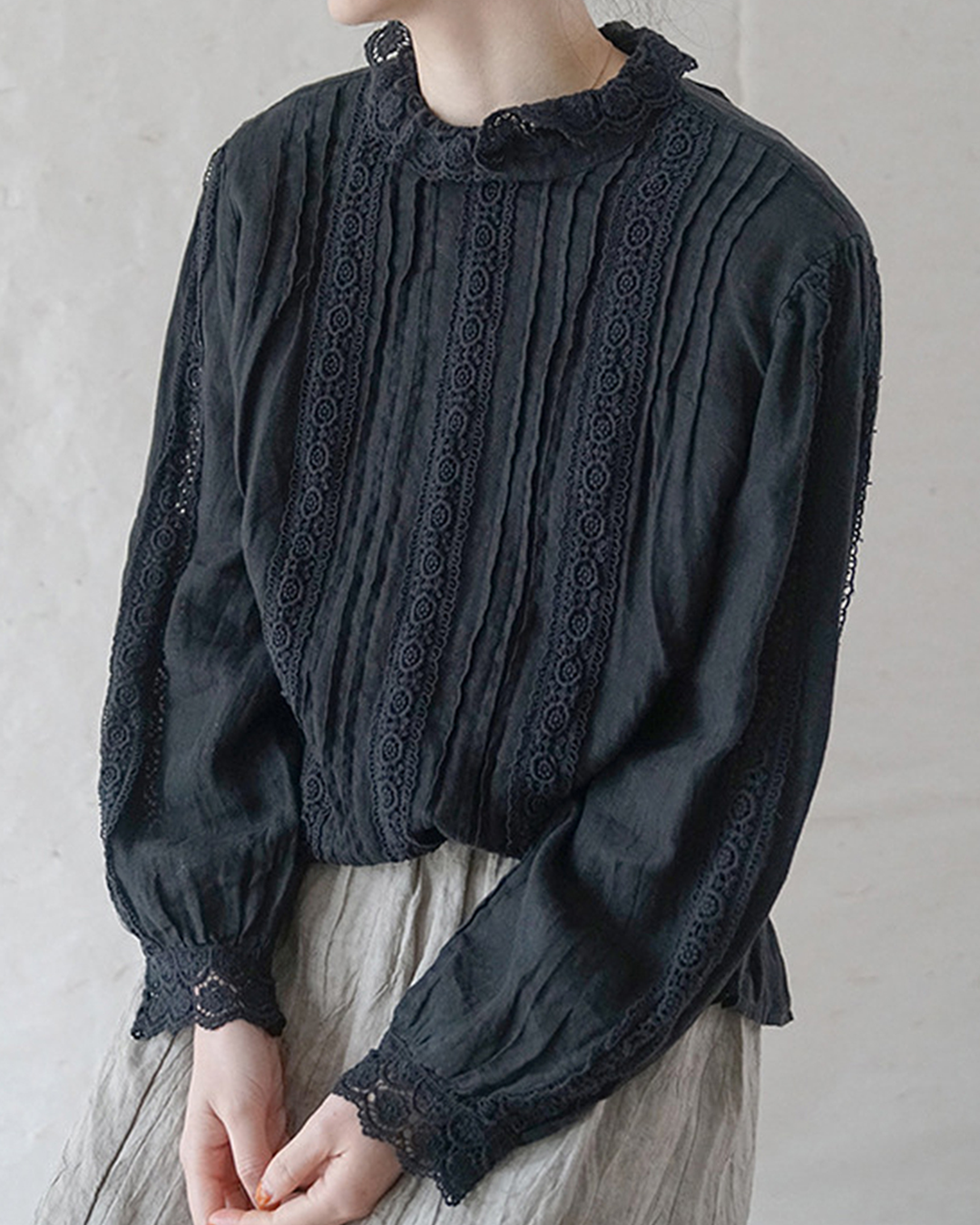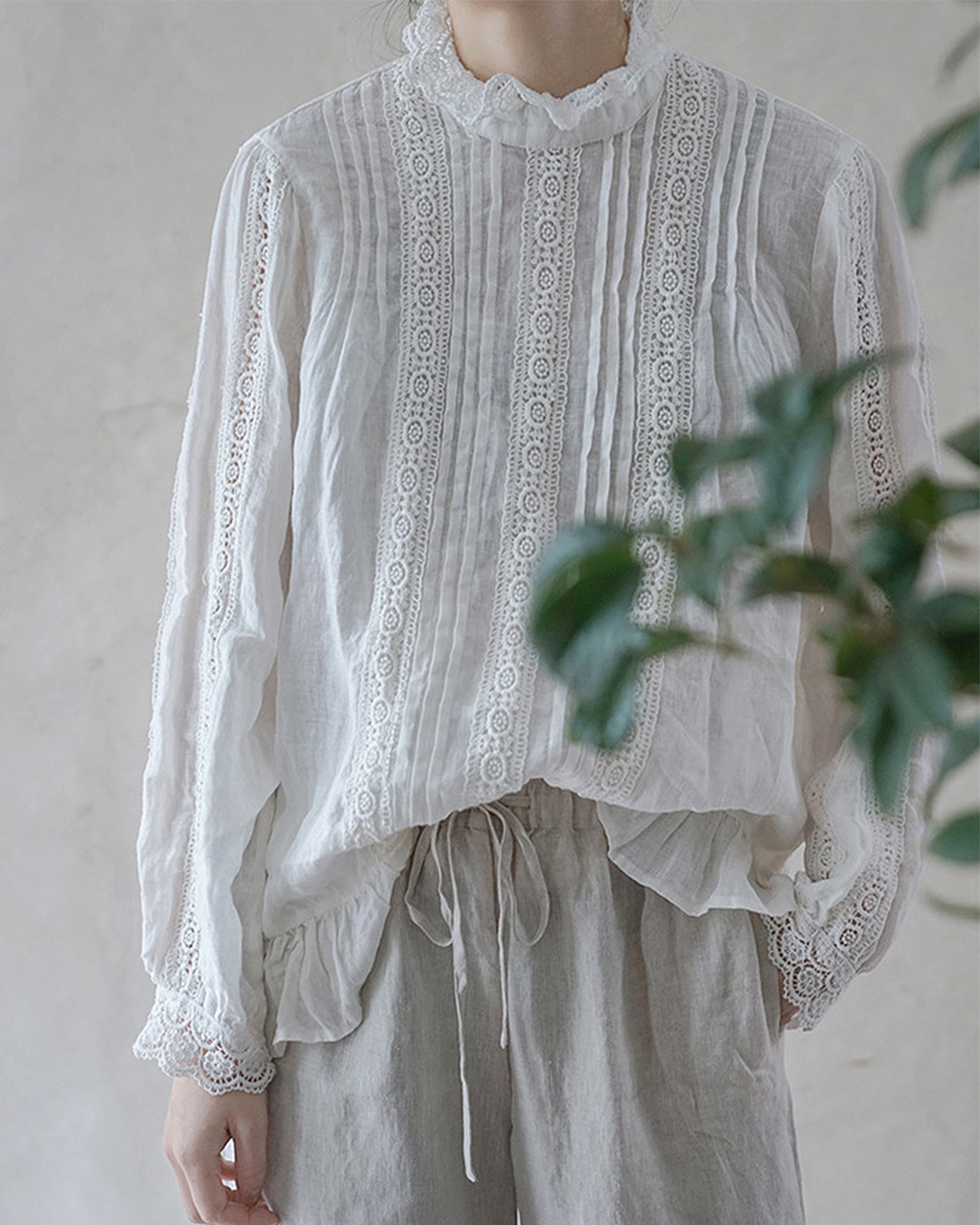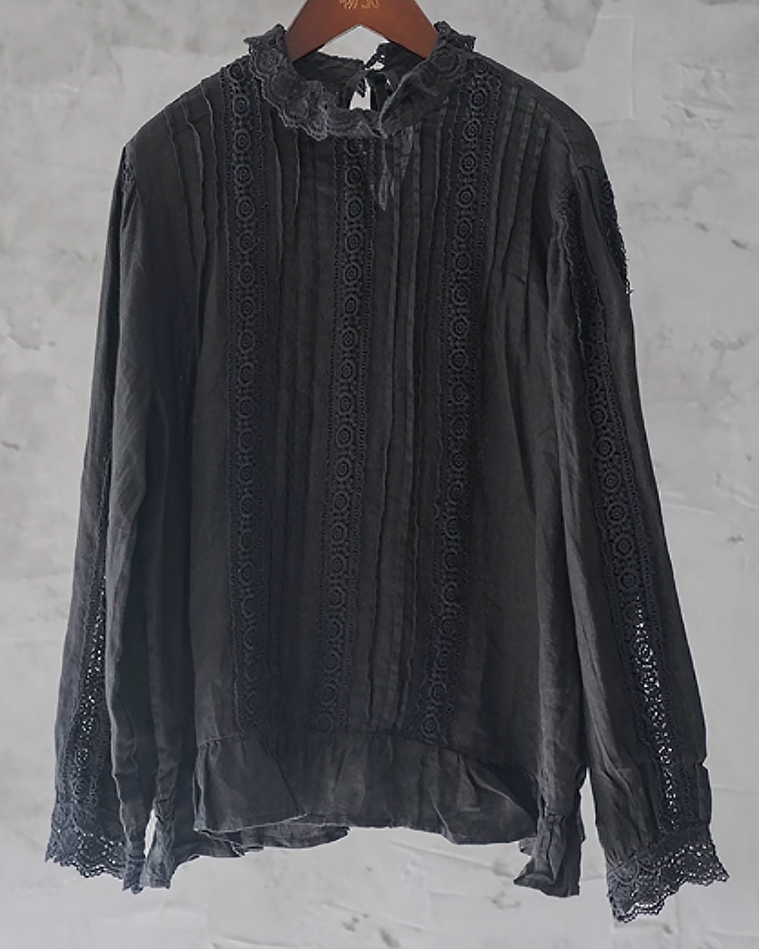 スタンドカラーフリルエンブロイダリーブラウス 1149