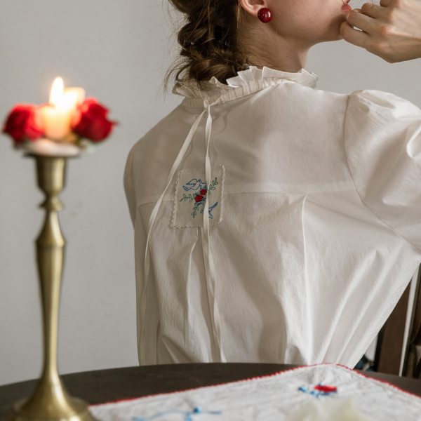 ダブルレイヤーパフスリーブ刺繍ジャケット 2442