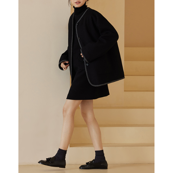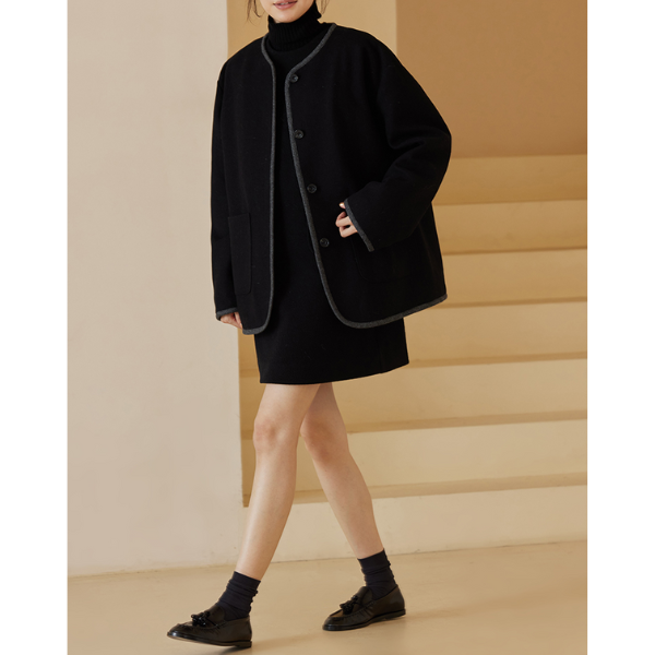 ソフトタッチキルトノーカラーショートジャケット 2772