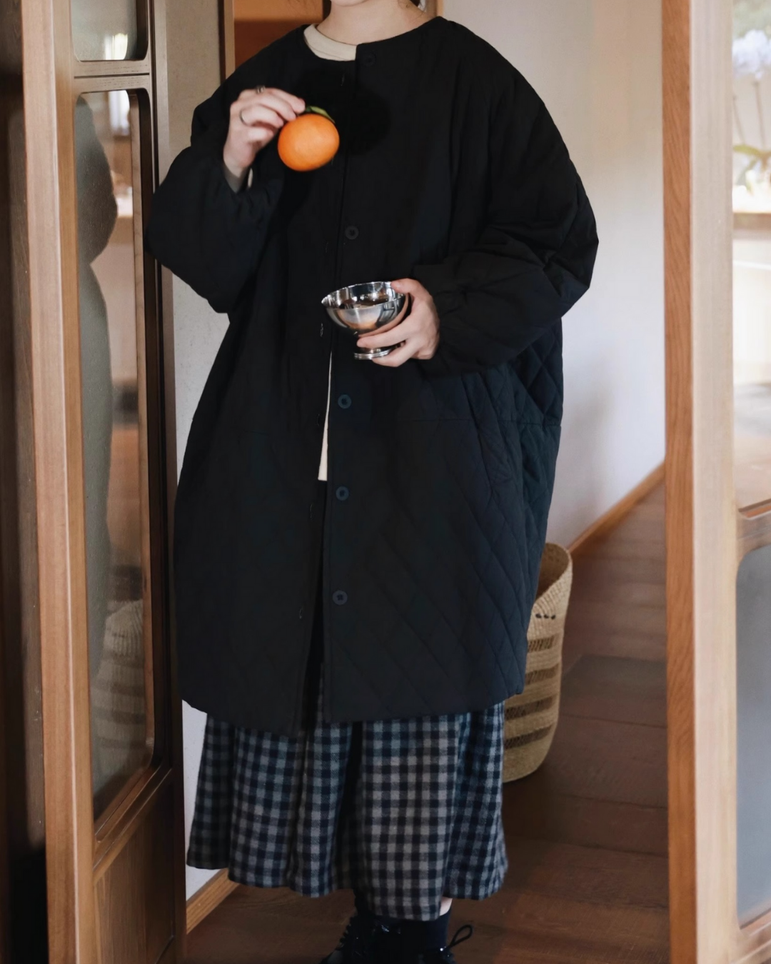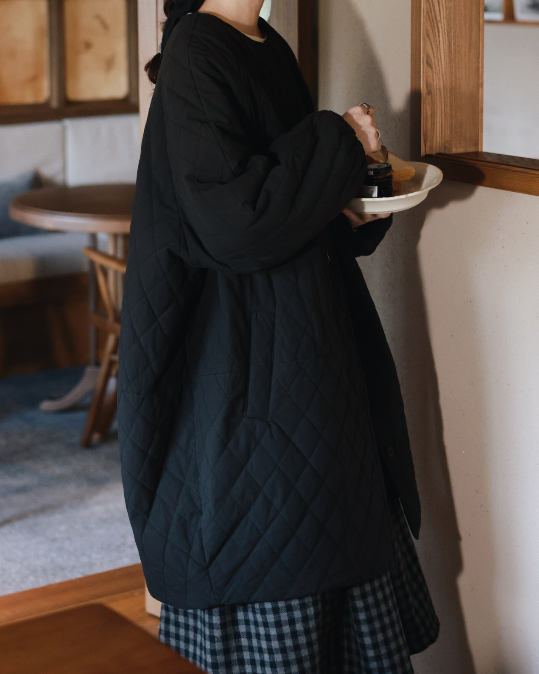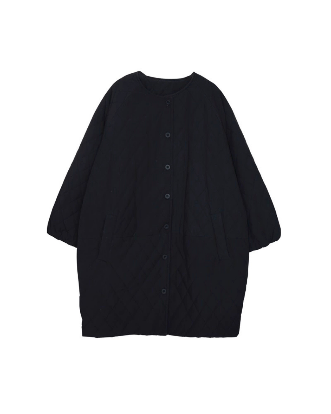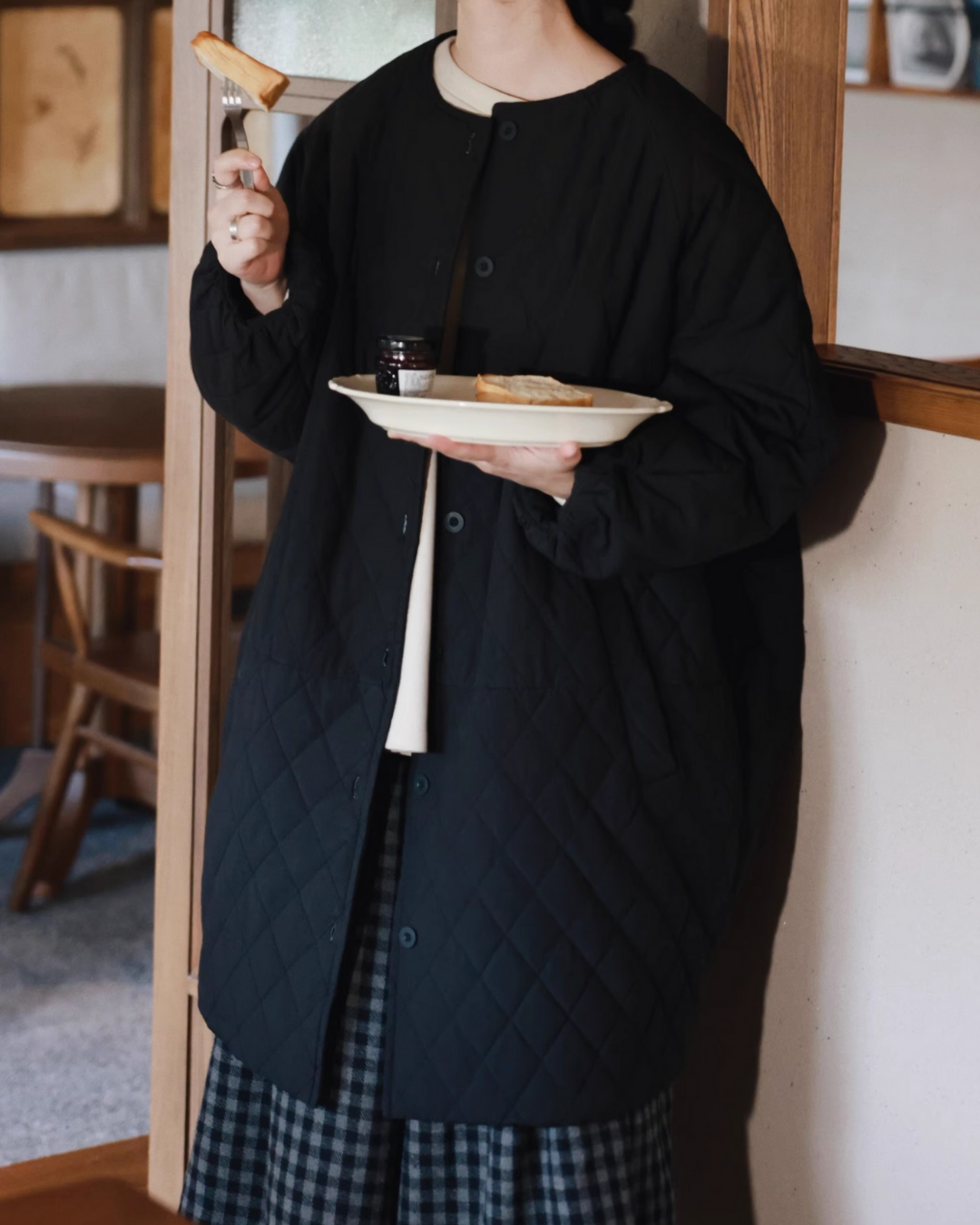 ノーカラーキルティングロングコート 2741