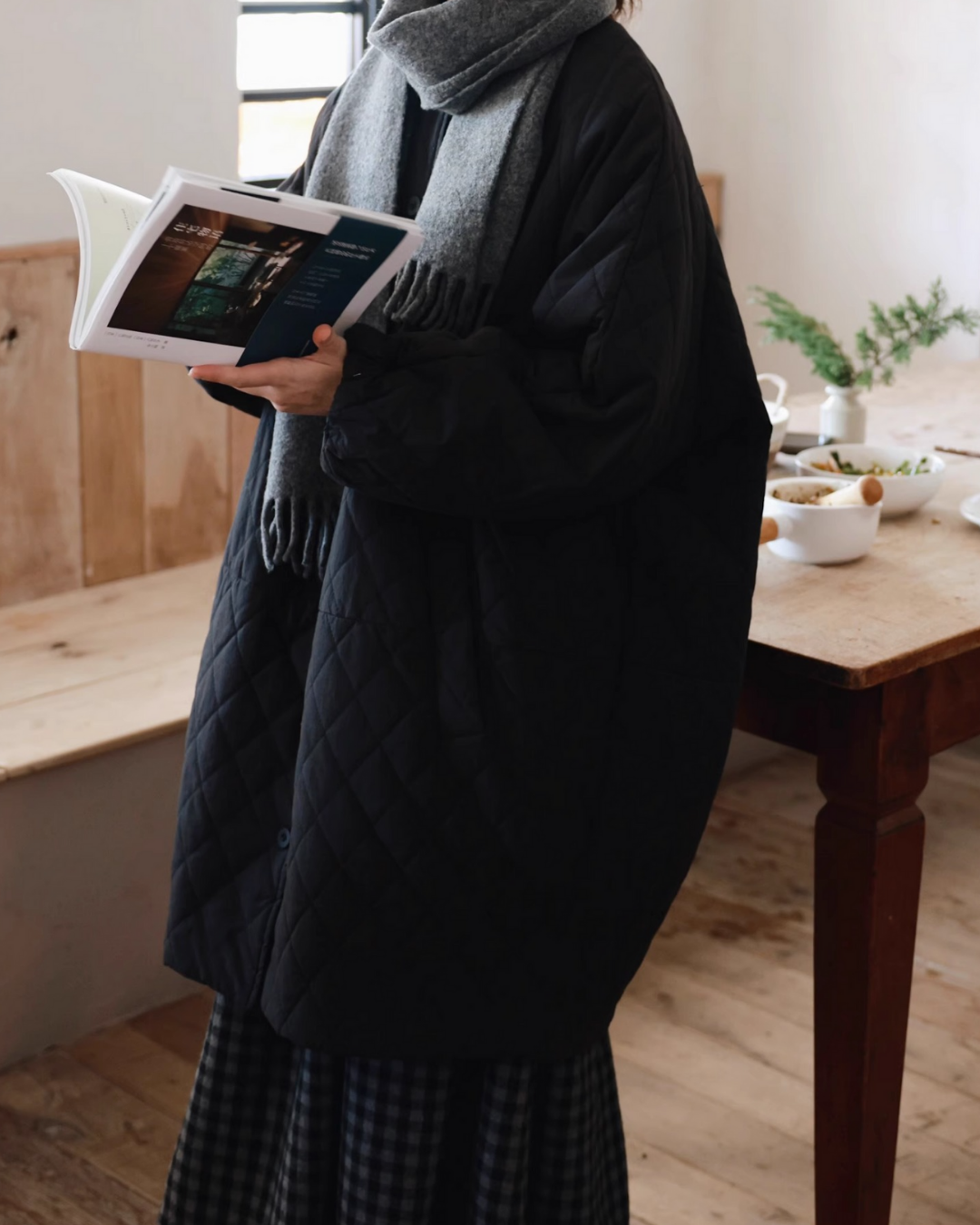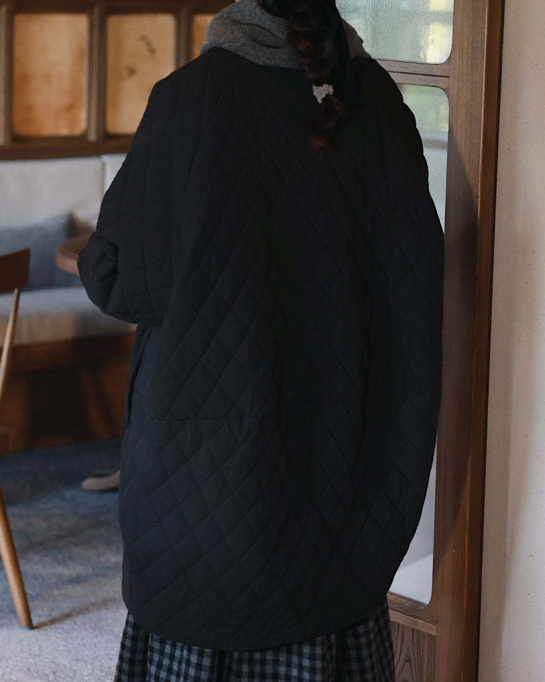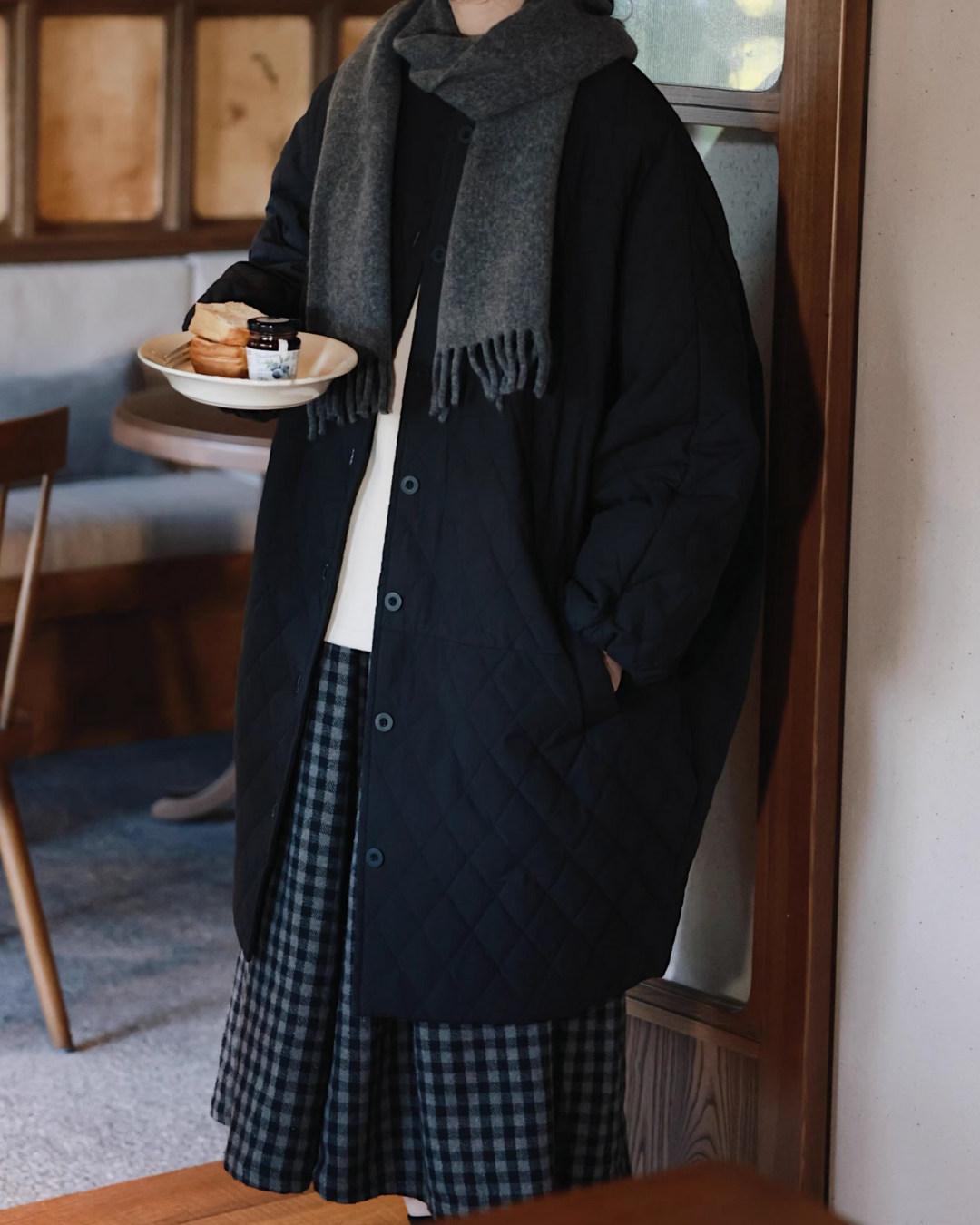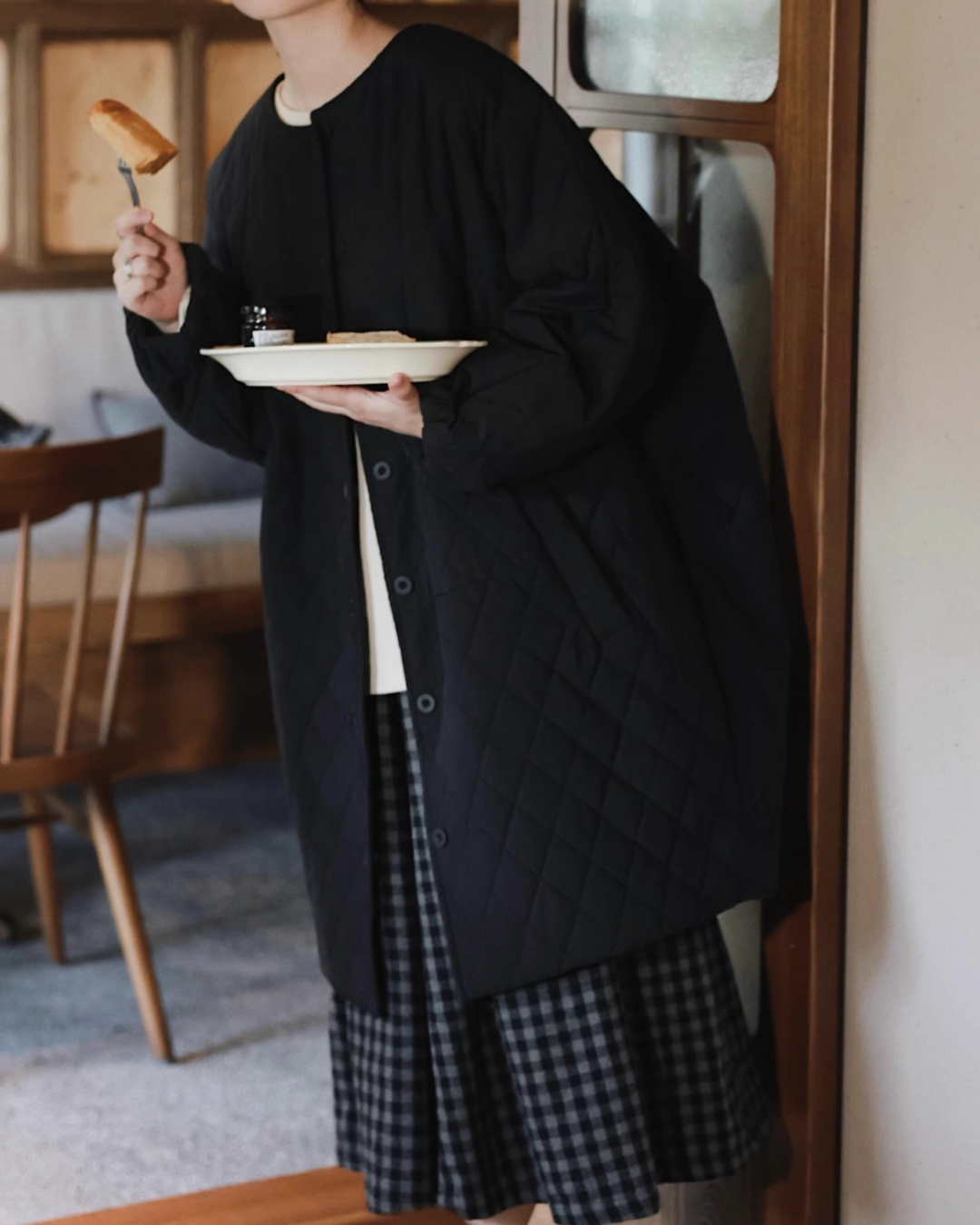 ノーカラーキルティングロングコート 2741