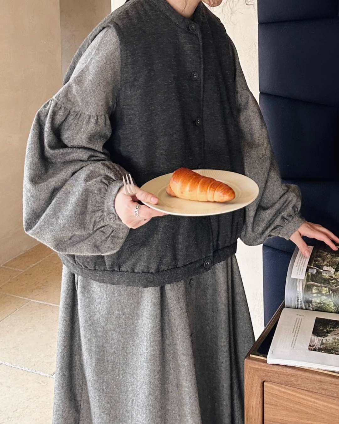 ダブルレイヤーパフスリーブ刺繍ジャケット 2442